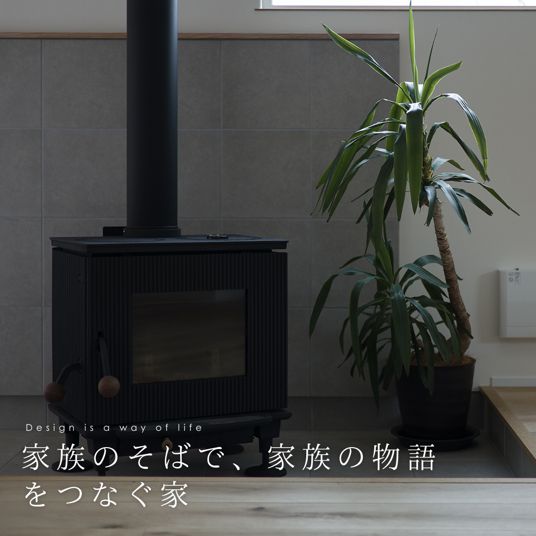 リビングで遊ぶ子どもを見守りながら家事ができる動線、家族が自然と集まる明るい空間。そして、家の中心には薪ストーブを配置。火のゆらぎが家族の時間をゆっくりと包み込み、冬の団らんをより豊かにしてくれます。